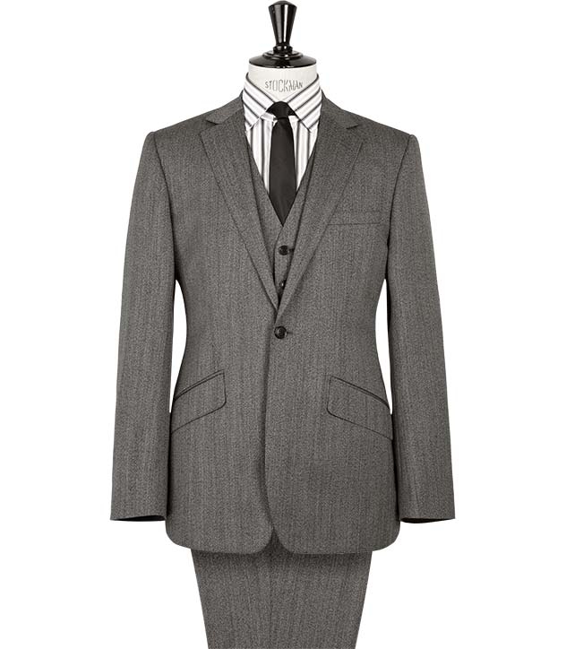 1 button, slanted pockets, 3 piece suit
